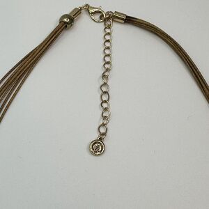 C 1946 Signed Gold Tone Gingko Leaves and Round Beads Necklace Leather Cord