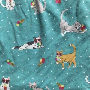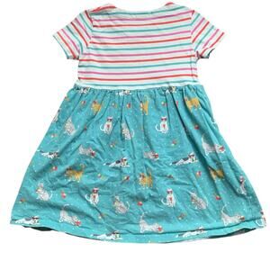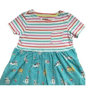 Cotton striped short sleeve mixed print dress with fun kitty cats wearing sunglasses and ice cream cones print