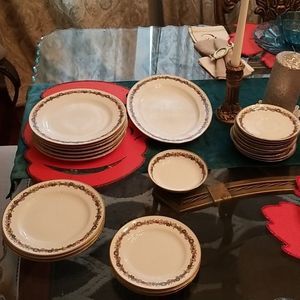 This patented pattern is true vintage composed in the 1930's . Beautiful floral border with 24k gold trim on white china. This listing is for 6 DINNER PLATES. There are other pieces available, but sold separately to stay within Poshmark 5lb weight limit. No chips, cracks, crazing, or gold loss. View all photos as they are apart of description. May be removed at anytime due to Co listing. Thanks for looking.