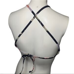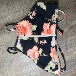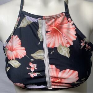 C Apparel L black floral hibiscus cross back top