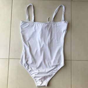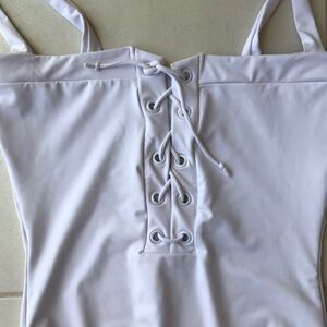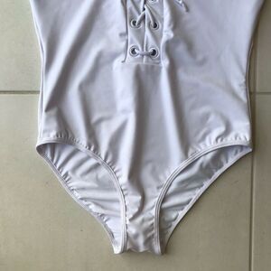 C Apparel One Piece Swimsuit Lace Up Retro White