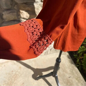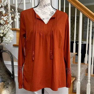 C Apparel Rust Color V Neck Boho Top Tassels Size Medium