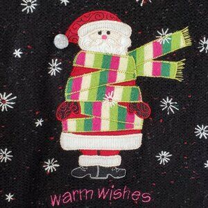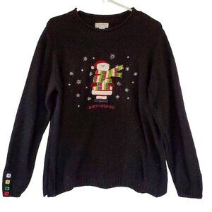 C & B Black Speckle Santa Christmas Sweater Women's L Knit Pullover Long Sleeve