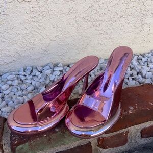 C BARBIE PINK METALLIC PLATFORM HEELS PUMPS DANCER PLEASER SZ 41