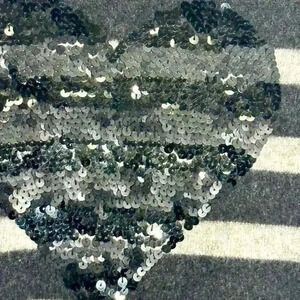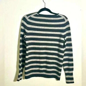 C BY BLOOMINGDALES. 2 ply Cashmere Sweater size Large gray stripe sequin heart