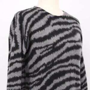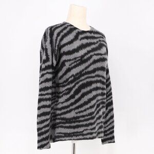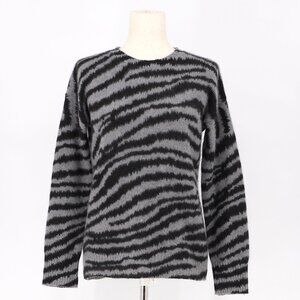 C BY BLOOMINGDALE'S Zebra Stripe Black & Gray Cashmere Sweater Size XS