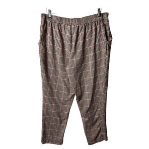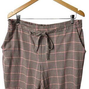 C By One Pants Pull On Slim Ankle Black White Red Check Belted Women’s XL