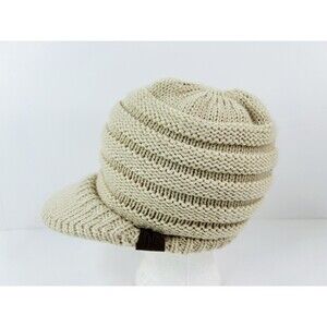 C. C. Beanie Womens One Size Beige Chunky Knit Brim Cap Hat Outdoor Winter