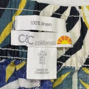 C & C CALIFORNIA 100% Linen Wide Leg Tropical Floral Pants Pockets Size L