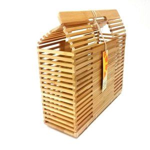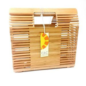 C&C California Bamboo Handbag Purse Open Top Rectangle Shape Unique