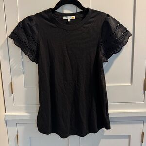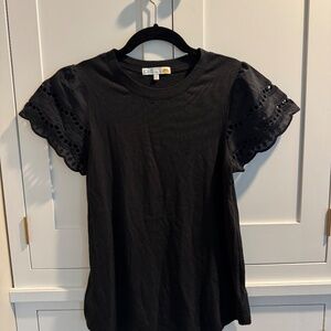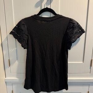 C & C Black T-Shirt With Lace Sleeves, Size XS. Very comfortable, the lace adds a touch of elegance. Make me an offer!