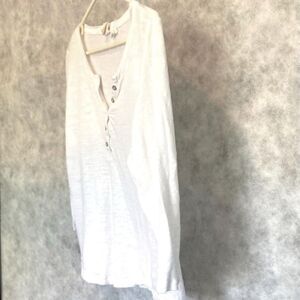 C & C California Linen Semi Sheer Lightweight Henley Top White Womens Large