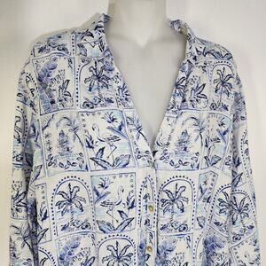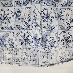 C & C California Linen Shirt Palm Trees Flamingo XL Blue White Coastal Resort