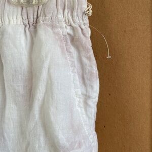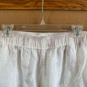 This is a pair of C & C California Linen Wide Leg Cropped Pants in a Size Large. Stretchy waist and side pockets. Tie Dye in a white and pinkish purple.