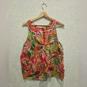 C C California Orange blouse sleeveless floral top size S boho hippie vacation