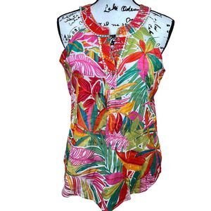 C C California Orange blouse sleeveless floral top size S boho hippie vacation