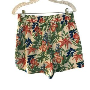 C & C California Shorts Tropical Print Linen Blend Elastic Back Sz 8 Colorful