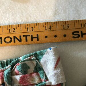 MEASUREMENTS: Approximate measurements lying flat: Waist 14.5", inseam 4", rise 11". Total from hem to cuff 14.5".