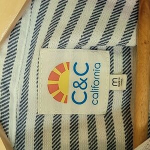 C & C California White & Blue Striped Button-Down Top, Size M, Soft