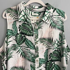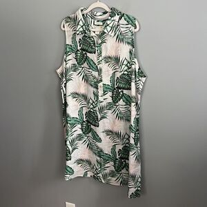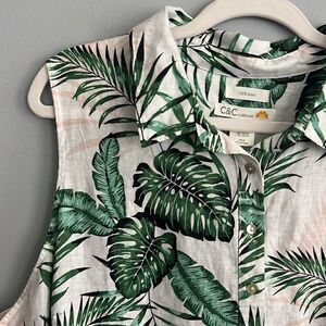 C & C California Women’s 2X 100% Linen sleeveless palm tree tropical dress