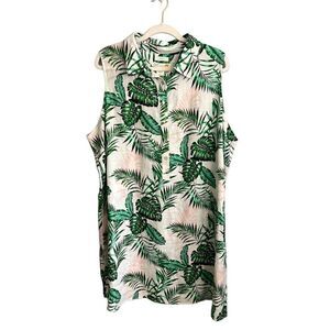 C & C California Women’s 2X 100% Linen sleeveless palm tree tropical dress