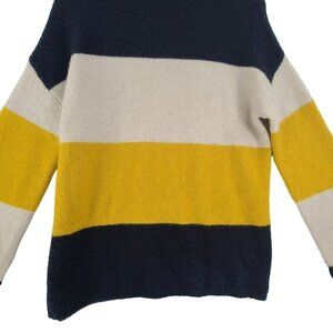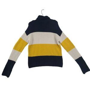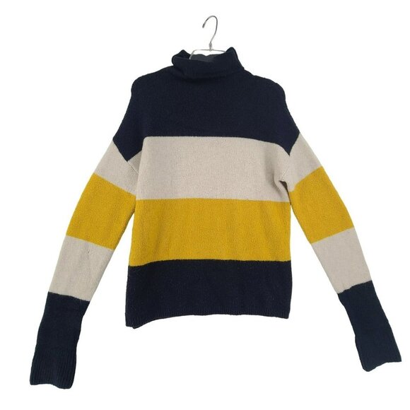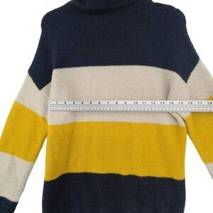 C & C California Women's Knit Wool blend Long Sleeve Turtleneck Sweater Striped blue white, yellow size M