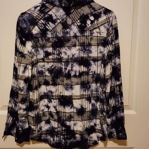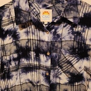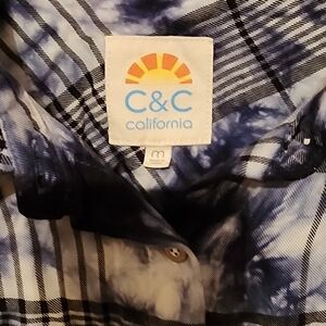 C & C California Womens Size M Blue, Black White Tie Plaid Button Front Shirt