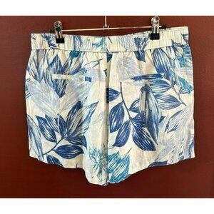 C & C California Women's White Blue Tropical Print 100% Linen Shorts Size Medium