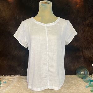 100% linen light blue colored top. Which 22 inches pit to pit and 26 inches long. Excellent condition with no flaws.