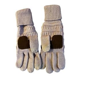 C. C. Exclusives Womens OS Knitted Tobaggan Pom Pom & Glove Set Pink Gold