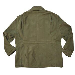 This C C Filson Green Large Field Flannel Lined *Damage Missing Button* Jacket is pre-owned and in good condition. Please note the repaired damage on the right sleeve as well as the second from the bottom missing button snap in the photos above. The measurements are: Sleeves: 25" Shoulder to Shoulder: 20" Chest: 52" Length: 31". Please review the photos to make your own assessment, thank you!