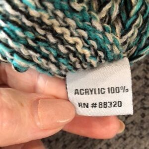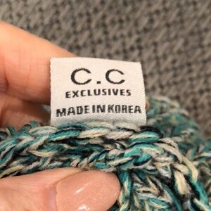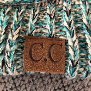 C.C knit beanie cap. Teal, gray and black. Very good pre-owned condition.