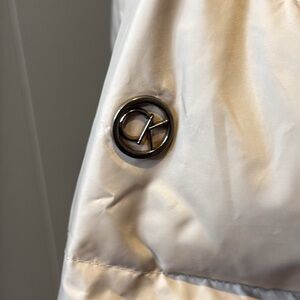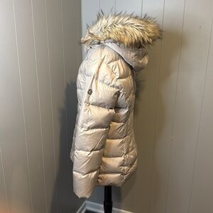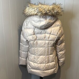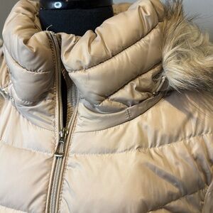 C CALVIN KLEIN Women’s Large Hooded Shiny Blush Puffer Coat Faux Fur Trim