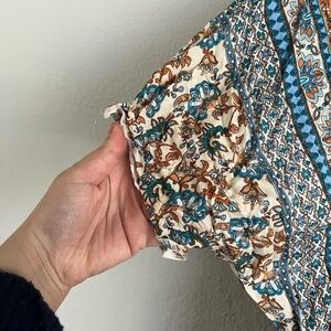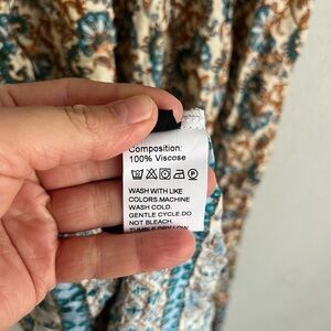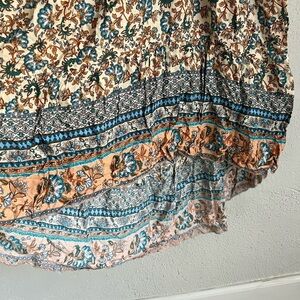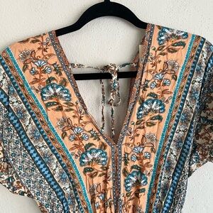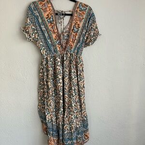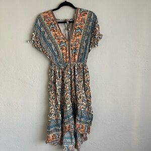 C. Cline Woman Apricot & Blue Floral V- Neck A- Line Dress, Size Small