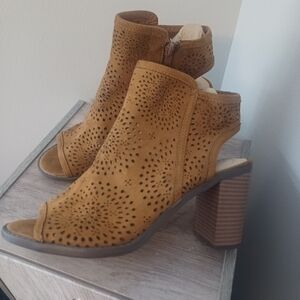 C Comfort Cut Out Peep Toe Heeled Booties Sz 9.