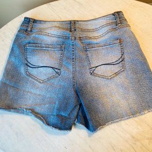 C Denim Womens Classic High Waisted Button Fly Raw Hem Jean Shorts Size 6