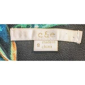 C & E Sleeveless Blouse Black Pink Tropical Graphic Floral V-Neck Size Small