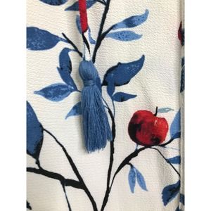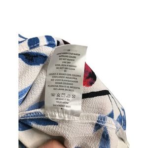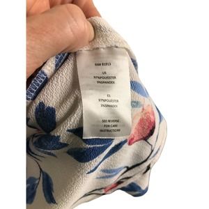 C & E Women's Blouse Sleeveless Top Blue Floral Ruffled Collar V-Neck Stretch M