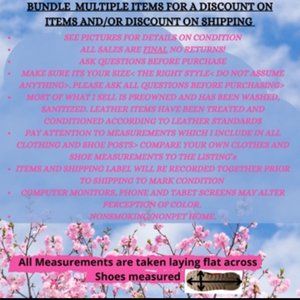 Measurements of items are always done lying flat and across right to left, top to bottom, etc. Shoes are measured on the bottom with the measuring tape going from the tip of the sole to the edge of the sole's heel. The width of the shoes are also taken on the bottom across the widest part of the foot (ball of the foot) SEE PICTURES FOR DETAILS ON CONDITION ASK ALL QUESTIONS BEFORE PURCHASE. ALL ITEMS WILL BE RECORDED PRIOR TO SHIPPING TO MARK THE CONDITION. NO RETURNS MONITORS AND SCREENS MAY ALTER PERCEPTION OF COLOR/SHADES Nonsmoking/pet home D471