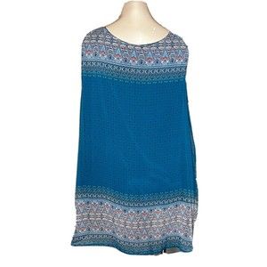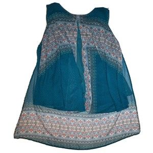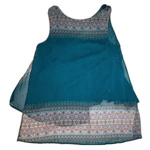 C EST 1946 Womens Shift Sleeveless Blouse Top Stretch Tank Teal Sheer Printed Layer Plus Size