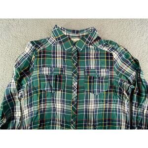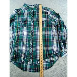 C Est 1946 Shirt Womens Large Green Plaid Button Up Long Sleeve Collar