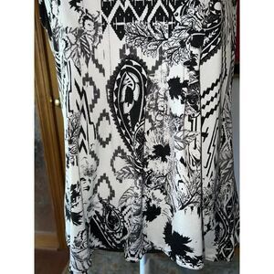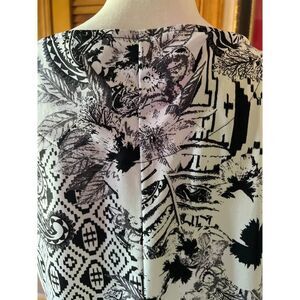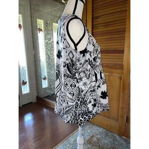 C Est. 1946 Womens Blouse — Medium. Black and White, sleeveless, pullover top, with a mesh bodice. Measurements: Bust: 38”; Length: 23”.