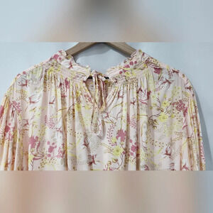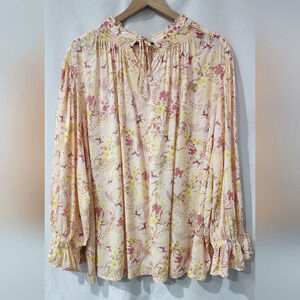 C Est. 1946 Womens Ruffle Top Size 26/28W Pink Floral Smocked Collar Cottage