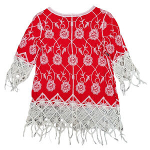 C Est. 1946 red boho fringe embroidered top women's medium beach cover