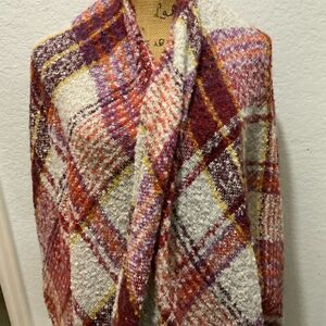 C Est 1946 Poncho Plaid Red cream multicolor One Size NWT