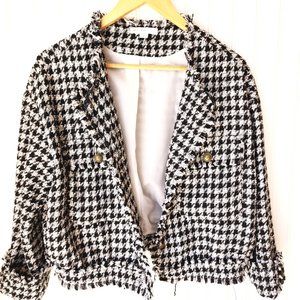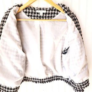 C. Established 1946 Womans Jacket Houndstooth Pattern Fringe Trim Size M Blk/Wht