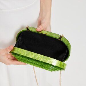 C Green Acrylic Shell Evening Clutch Glitter Marble Crossbody Bag for Women