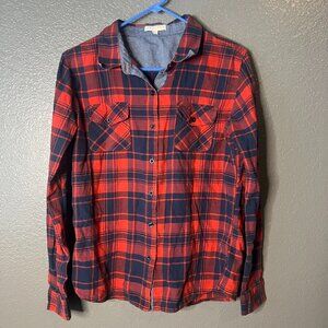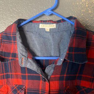 C I Sono Red and Navy Plaid Flannel Shirt - Size Medium