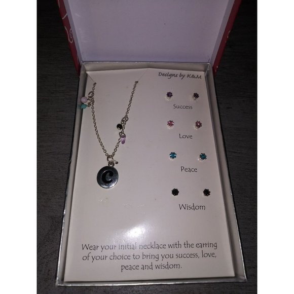 C Initial Necklace with 4 Pairs of Earrings Designs by K&M