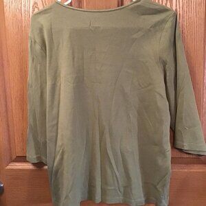 C J Banks Shirt, Olive Green, scoop neck, 3/4 Sleeves